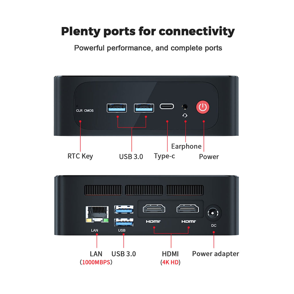- ✔【Complete ports】 Beelink SER3 Mini PC have 2*HDMI port, 4*USB3.0 port, 1*Type-C(data) port and other interfaces,Dual HDMI can connect two monitors at the same time, which increases work efficiency effectively.