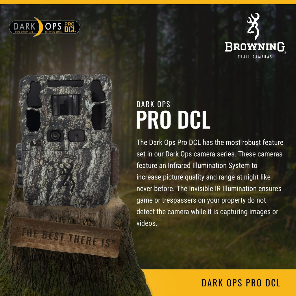 Details: The Dark Ops Pro DCL has the most robust feature set in our Dark Ops camera series. These cameras feature an Infrared Illumination System to increase picture quality and range at night like never before. The Invisible IR Illumination ensures game or trespassers on your property do not detect the camera while it is capturing images or videos.