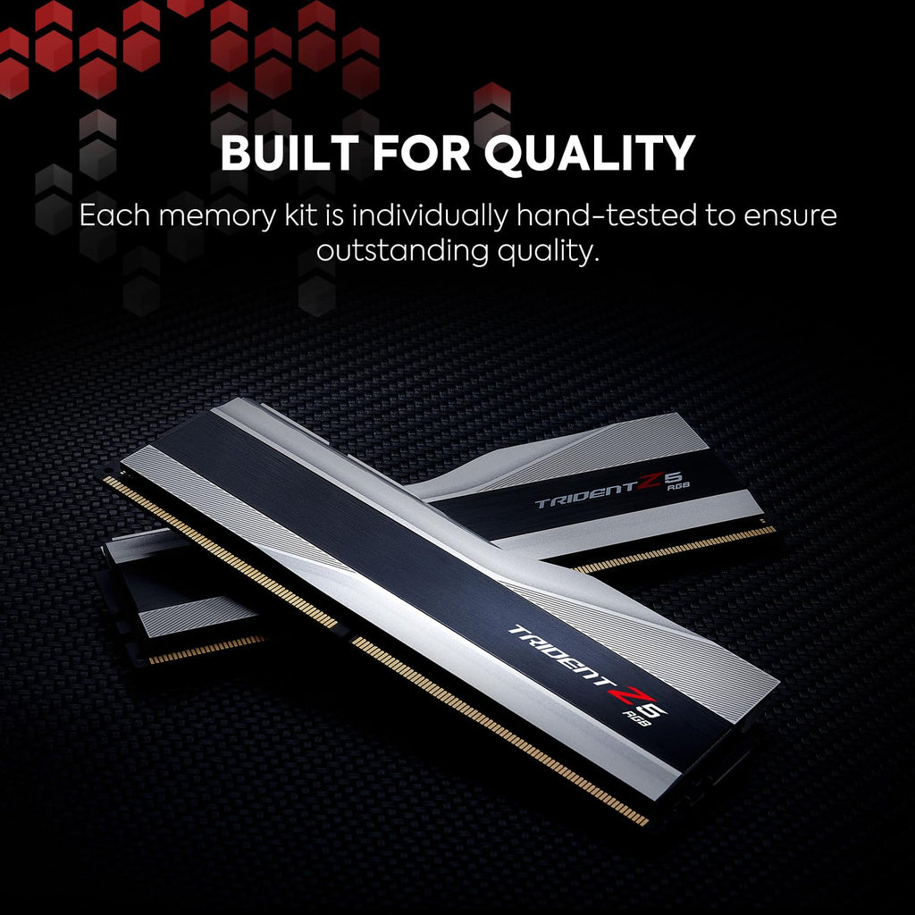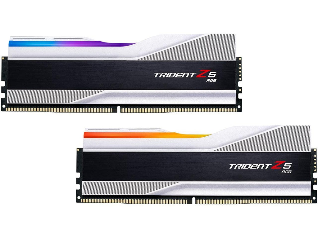 G.SKILL Trident Z5 RGB Series DDR5 RAM (Intel XMP 3.0) 32GB (2x16GB) 7200MT/s CL34-45-45-115 1.40V Desktop Computer Memory U-DIMM - Metallic Silver (F5-7200J3445G16GX2-TZ5RS)