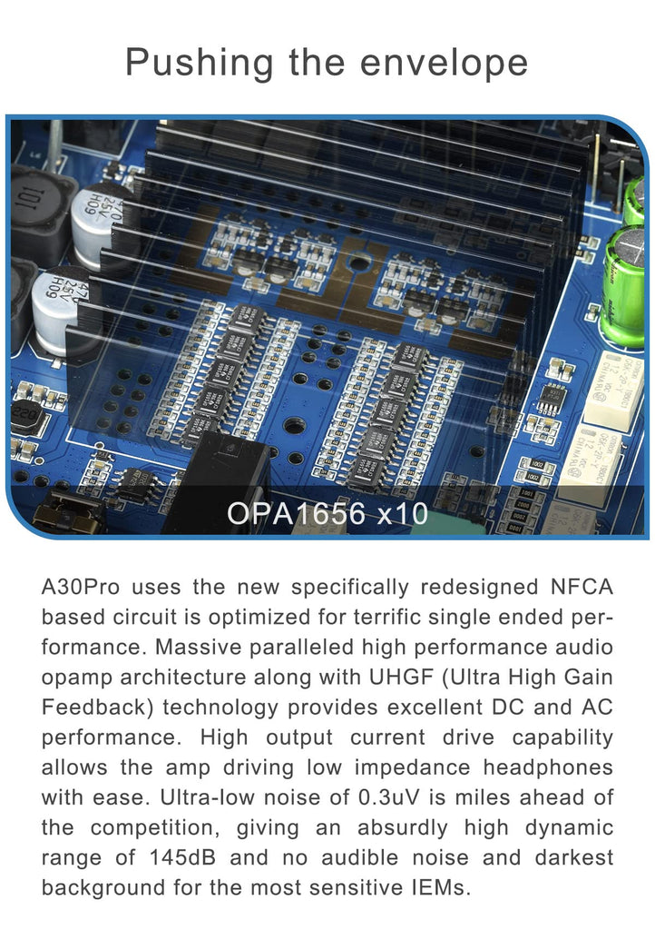- ►Incredible output power► The new specifically redesigned NFCA based circuit is optimized for terrific single ended performance . Huge output power and margin bring excellent control ability, and there are no more headphones hard to drive.