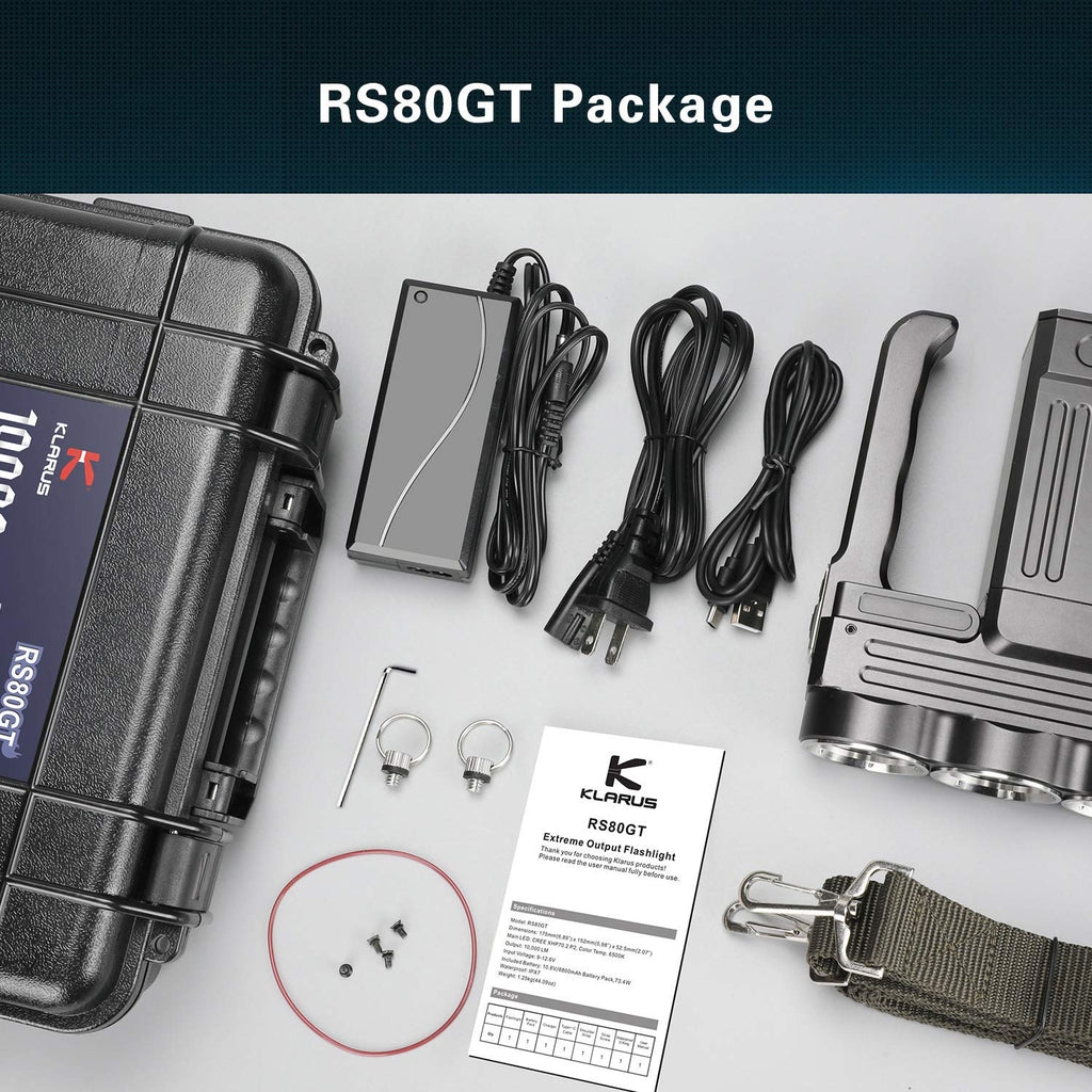 Klarus 10000 Lumens Ultra-Bright Rechargeable Portable Spotlight, 6×3400mAh Battery Pack, Table Lamp, Large Flashlights, Camping Lights Great for Hurricane Emergency Kits and Travel