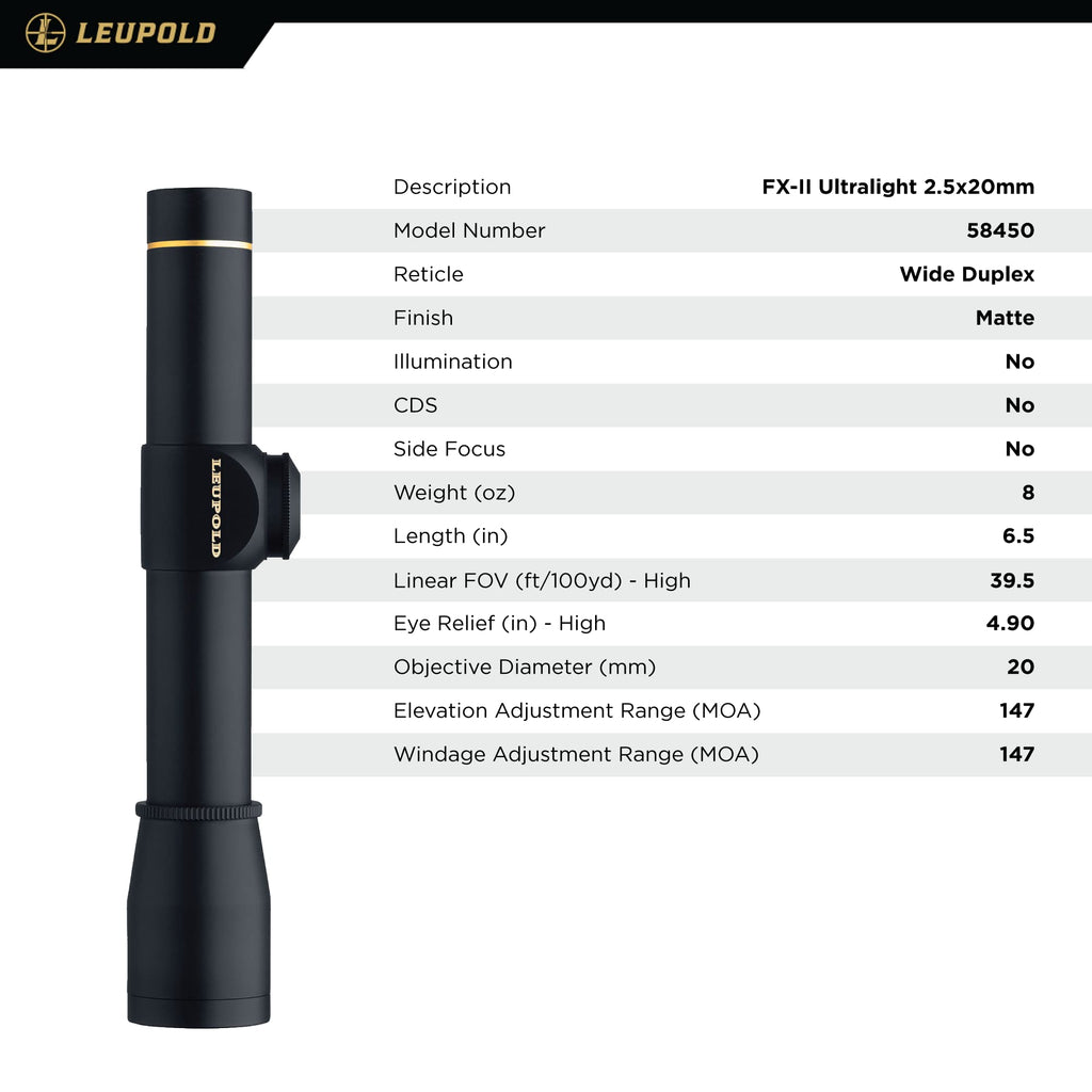 Leupold FX II 2.5x20mm Rifle Scope *Ultralight* Wide Duplex 58450 - New Sealed