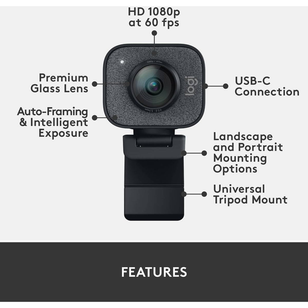 Logitech StreamCam Plus Webcam with Tripod Mount (Graphite), 1080p (960-001280)