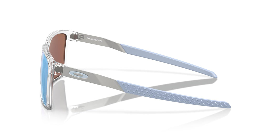 - FRAME FEATURES: OO9483 Exchange Sun are made with lightweight and durable BiO-Matter, with Unobtainium earsocks for secure fit. They feature a rectangular, polished clear frame with Prizm deep water polarized lenses.