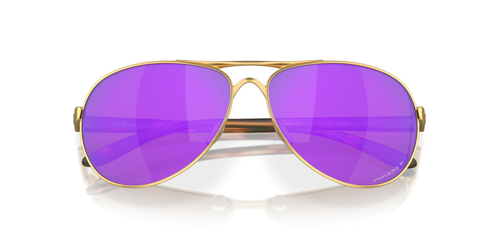 Oakley Womens OO4079 Feedback Aviator Sunglasses, Satin Gold/Prizm Violet Polarized, 59 mm