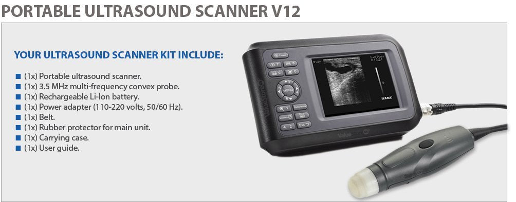 Portable Ultrasound Scanner Veterinary Pregnancy V12 with 3.5 MHz Convex Probe for Sheep, Dog, Cat and Pig.