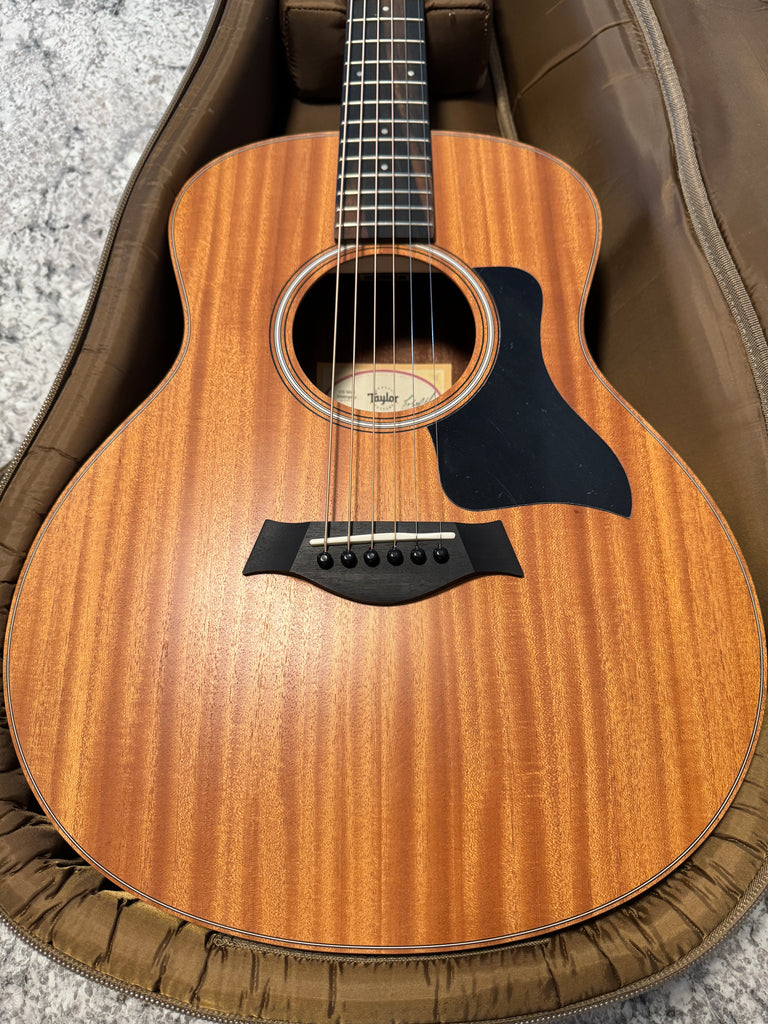 Details: Little in Size, Big on Taylor Tone Looking for Taylor quality in a small-sized guitar? The Taylor GS Mini Mahogany acoustic guitar gives you all that and more! While some smaller guitars pawn off their tone and sustain in the quest for portability, this Taylor guitar’s Grand Symphony body shape delivers punch and resonance that’s twice its size. This model features a rich mahogany top, layered sapele back and sides, and an ebony fretboard, resulting in an exceptionally full sound. Grab one today and figure out why the GS Mini has become a Sweetwater favorite for work and play! Ultra-portable acoustic guitar Taylor's award-winning GS Mini Mahogany features a scaled-down version of their popular Grand Symphony body shape. With a total length that’s just over 36 inches, the GS Mini Mahogany is a perfect travel companion for road trips, subway rides, and even flights. Not only is it great for camping,