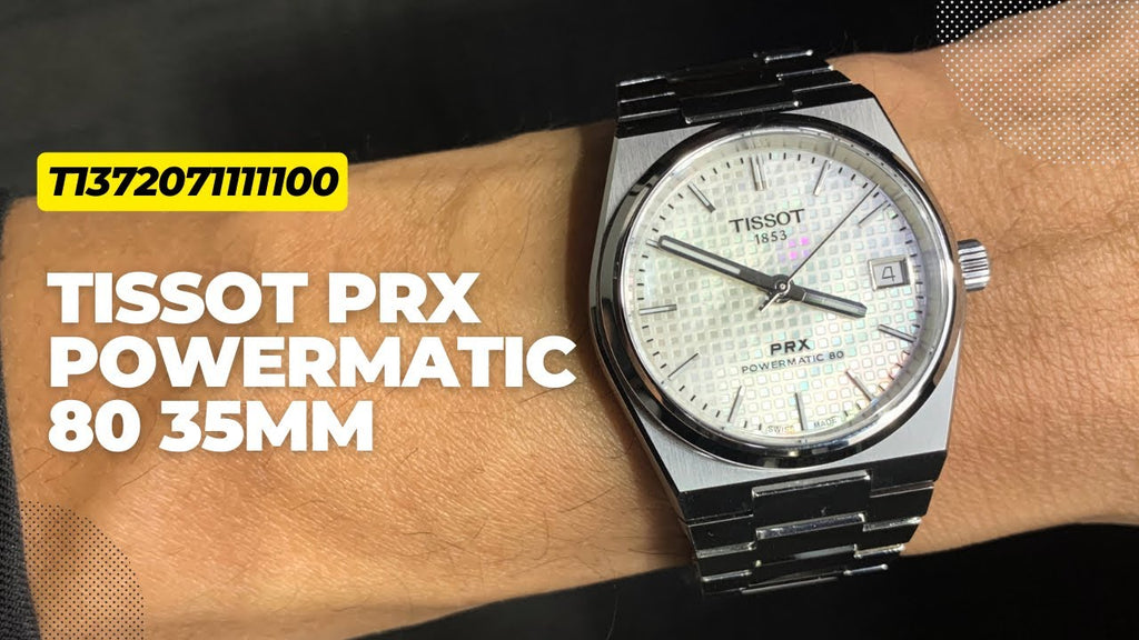 Unveiling the Tissot PRX 35mm Powermatic 80, a masterful combination of classic allure and modern refinement. This 35mm watch displays a high-quality steel case and a mesmerizing white mother-of-pearl dial, paying homage to its 1978 origins. The subtle waffle dial pattern brings a more versatile and unisex appeal than typically associated with mother-of-pearl designs. With water resistance up to 100 meters and a Nivachron™ balance hairspring, the PRX is an exquisite piece for those who appreciate the art of watchmaking. The satin-finish steel bracelet with a triple-blade folding steel clasp ensures ultimate comfort. Elevate your style with the Tissot PRX 35mm Powermatic 80 in white mother-of-pearl.