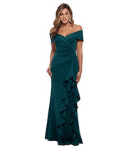Xscape Long Scuba Off-The-Shoulder Ruffle Dress Hunter XL / 16